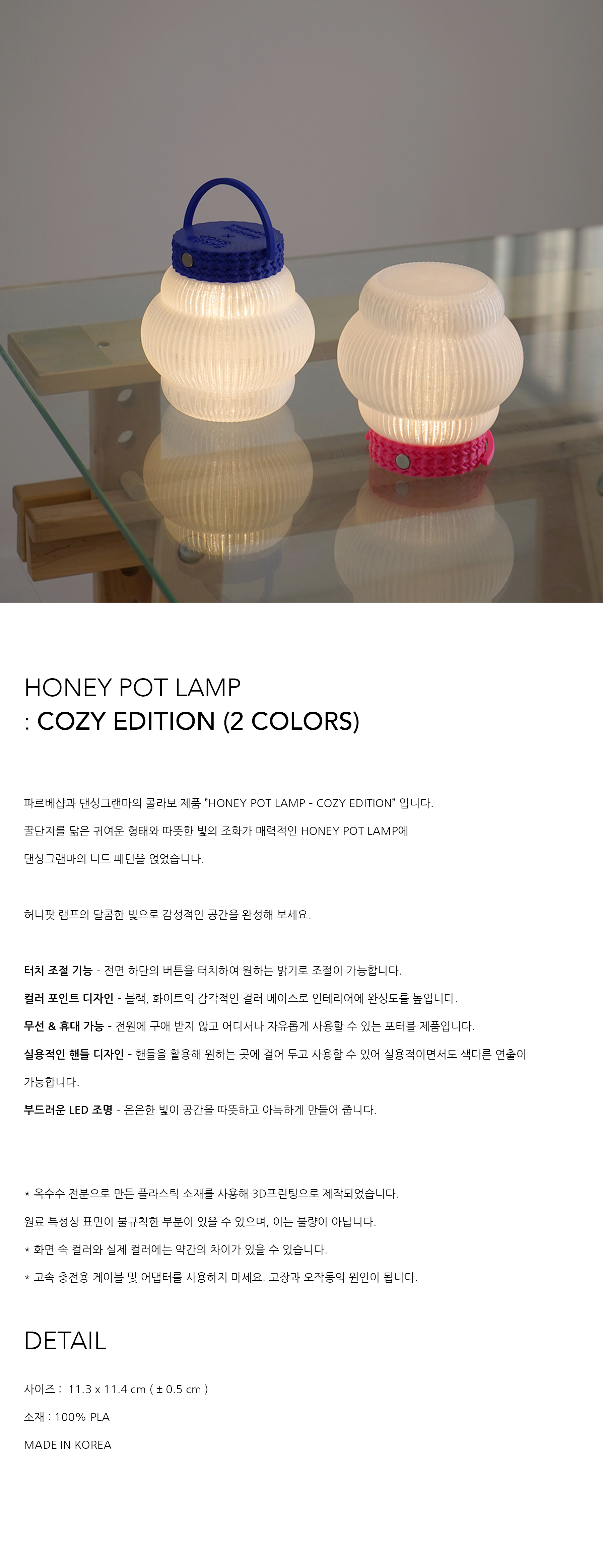 파르베샵과 댄싱그랜마의 콜라보 제품 ”HONEY POT LAMP – COZY EDITION” 입니다.