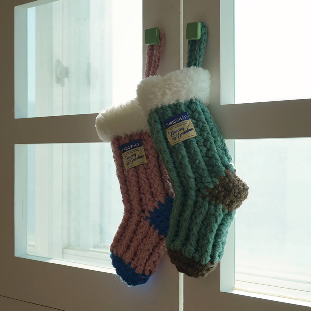 두 브랜드의 색이 담긴 귀여운 뜨개 양말을 집 안 어디에든 걸어 설레이는 연말의 분위기를 연출해보세요.
