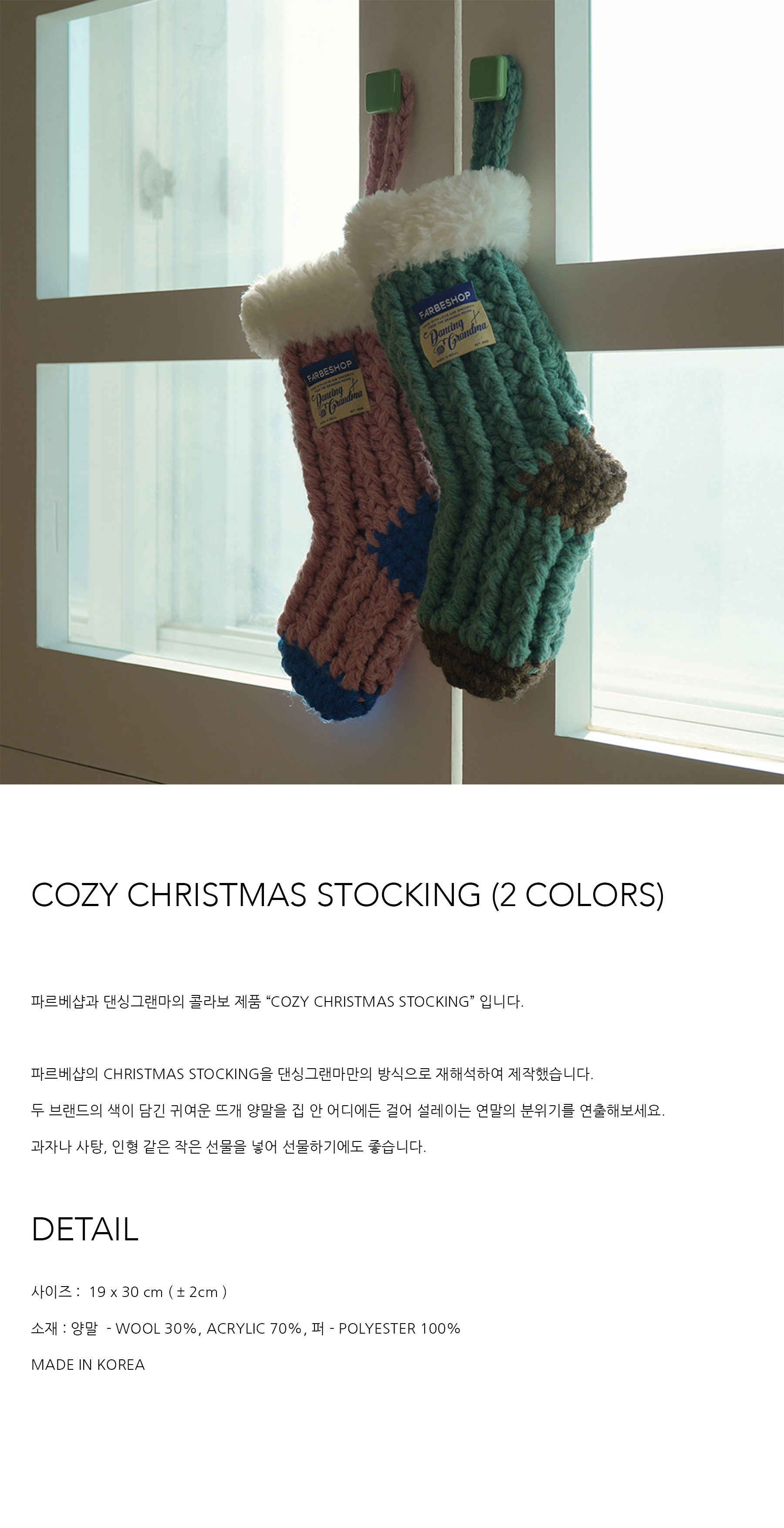 파르베샵과 댄싱그랜마의 콜라보 제품 “COZY CHRISTMAS STOCKING” 입니다.
