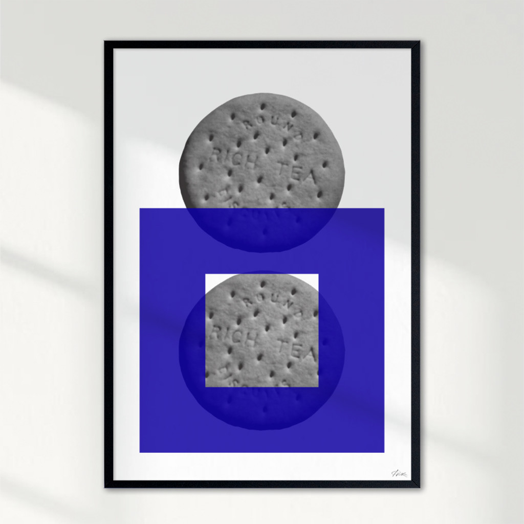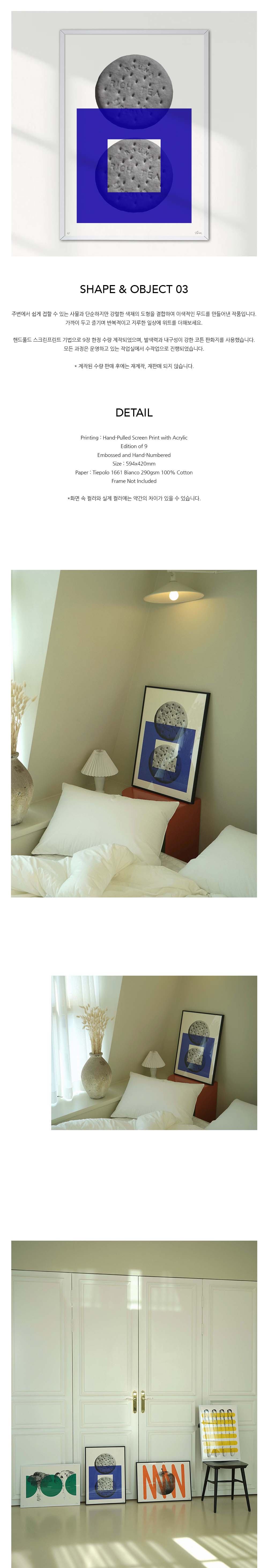 주변에서 쉽게 접할 수 있는 사물과 단순하지만 강렬한 색채의 도형을 결합하여 이색적인 무드를 만들어낸 작품입니다.
